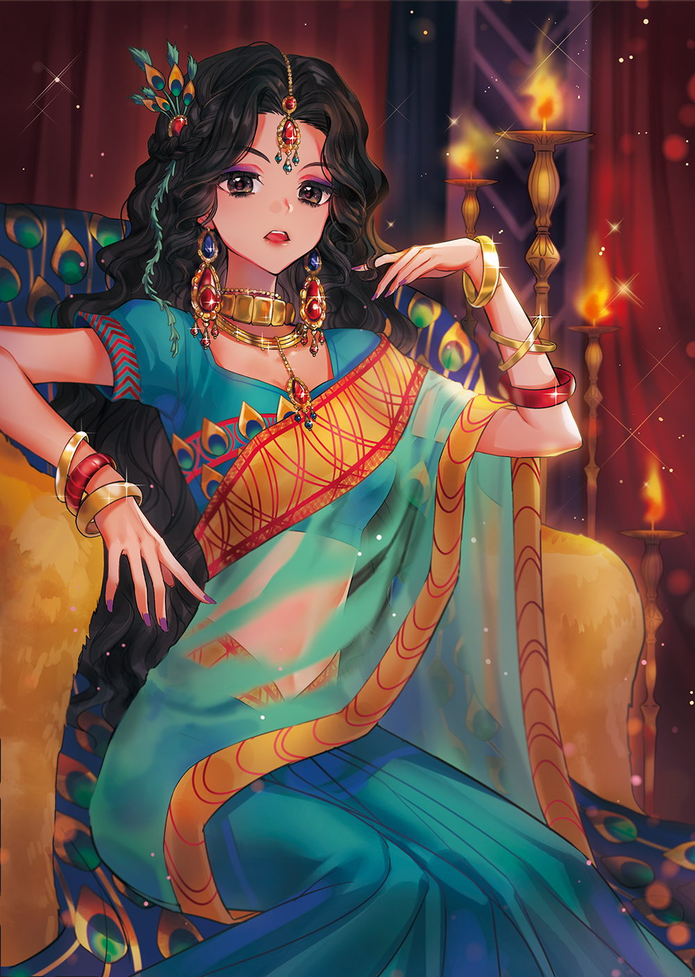 의상도감에 참여했던 인도공작 소녀화 일러스트입니다.