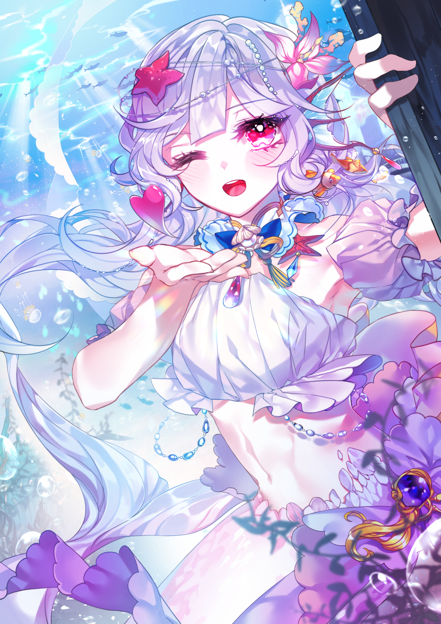 바다의 인어를 모티브로 한 일러스트입니다.